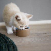 Geef je kitten de eerste dagen nog het voer dat hij gewend is. Ander voer kan zorgen voor stress, ook in de darmen van je nieuwe kitten. Je kan aan de fokker vragen of je wat voer mee kan krijgen. Of vraag naar het merk dat hij of zij gebruikt.
