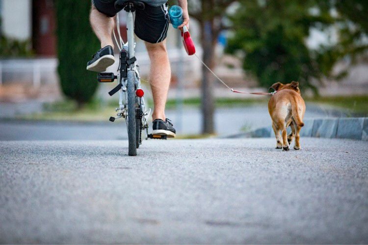 Is je hond volgroeid en fit? Dan kan hij naast je gaan lopen terwijl jij fietst.
