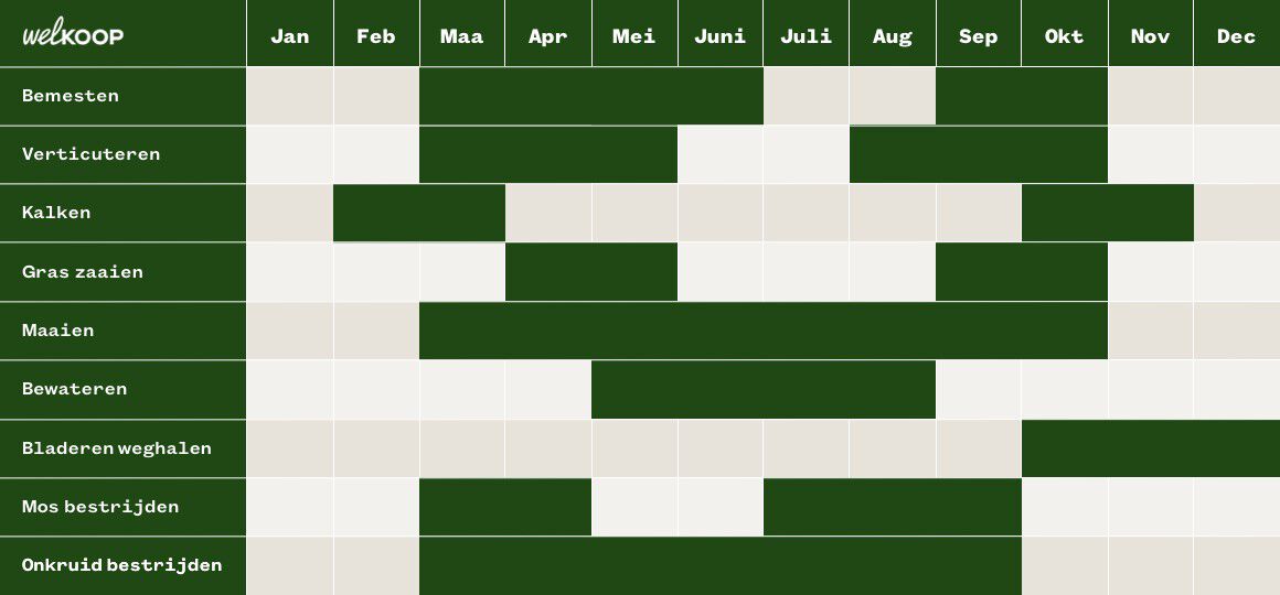 Altijd een strak en mooi gazon? Meld je dan gratis aan voor onze Gazonwekker . Ontvang het hele jaar door tips op het juiste moment. En wees direct op de hoogte van kortingen en acties.