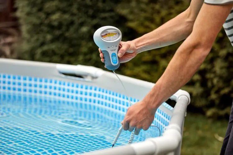 Test de pH-waarde van je zwembadwater met een teststrip of een meter.