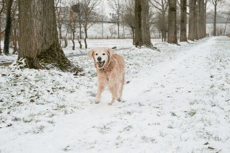 Weet je nog niet goed hoe je hond reageert op sneeuw? Start dan met een korte wandeling.