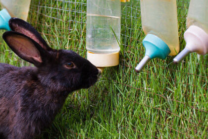 Bevroren waterfles: Vul een plastic fles voor driekwart met water en leg ‘m in de diepvries. Wikkel vervolgens een handdoek om de fles en leg ‘m in het hok. Je konijn kan hier lekker tegenaan liggen om af te koelen.