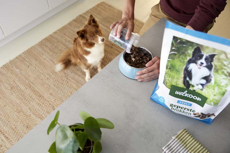 Het is belangrijk om de hoeveelheid zorgvuldig af te wegen. Zo voorkom je dat je hond te weinig of juist te veel voeding binnenkrijgt. Kijk op de verpakking voor de juiste dagelijkse hoeveelheid.