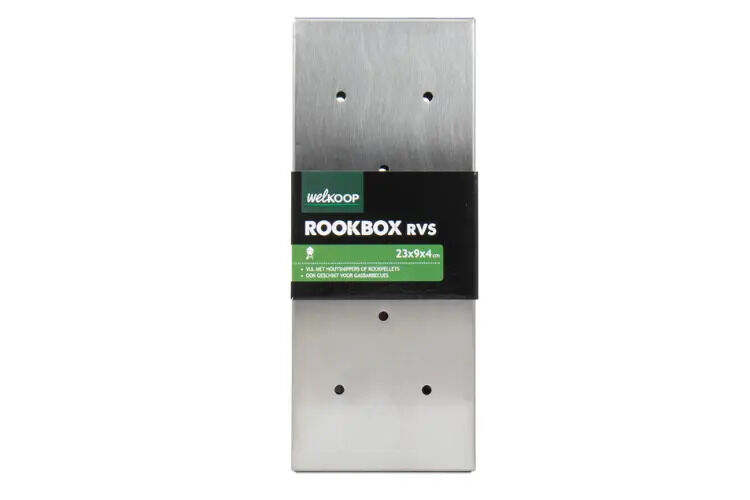 Een rookbox is een metalen, langwerpige doos met gaatjes in de deksel. Je doet er houtsnippers of houtpellets in. De box leg je daarna op de hete kolen, briketten of op de gasbarbecue. Op deze manier kan het rookhout langzaam en gecontroleerd verbranden. Zo krijg je de kenmerkende witte rook die je BBQ-gerechten van een heerlijke rooksmaak voorziet.