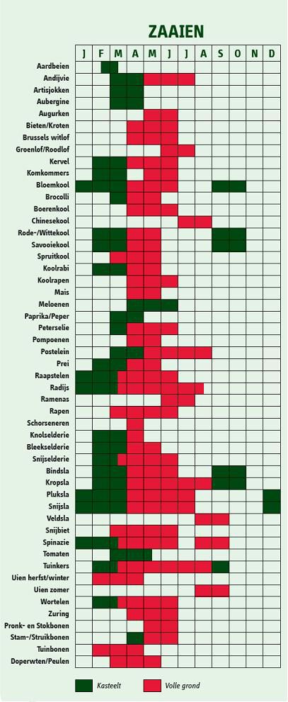 Wanneer je het zaad moet zaaien staat op de verpakking of kijk op de zaaikalender. Hoe je het zaad moet zaaien staat ook op de verpakking, volg de aanwijzingen.