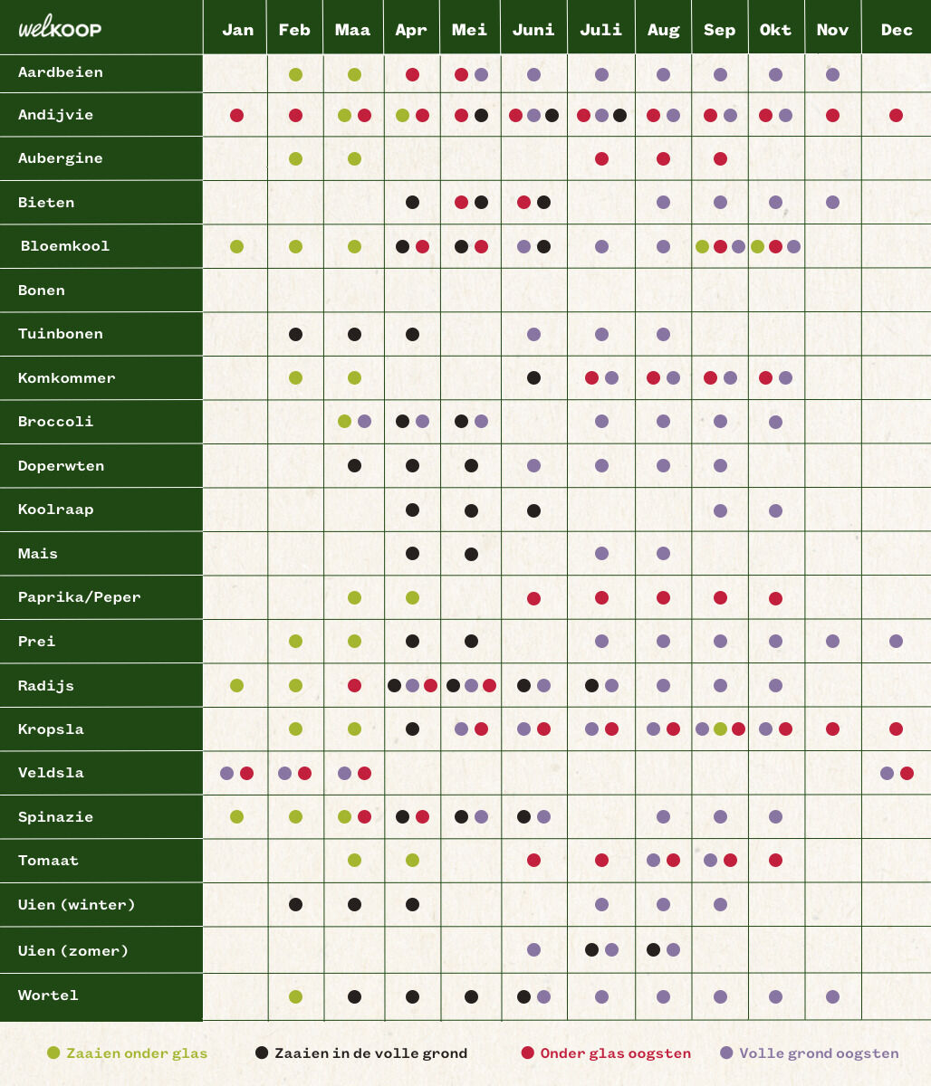 Download hieronder onze complete zaaikalender: