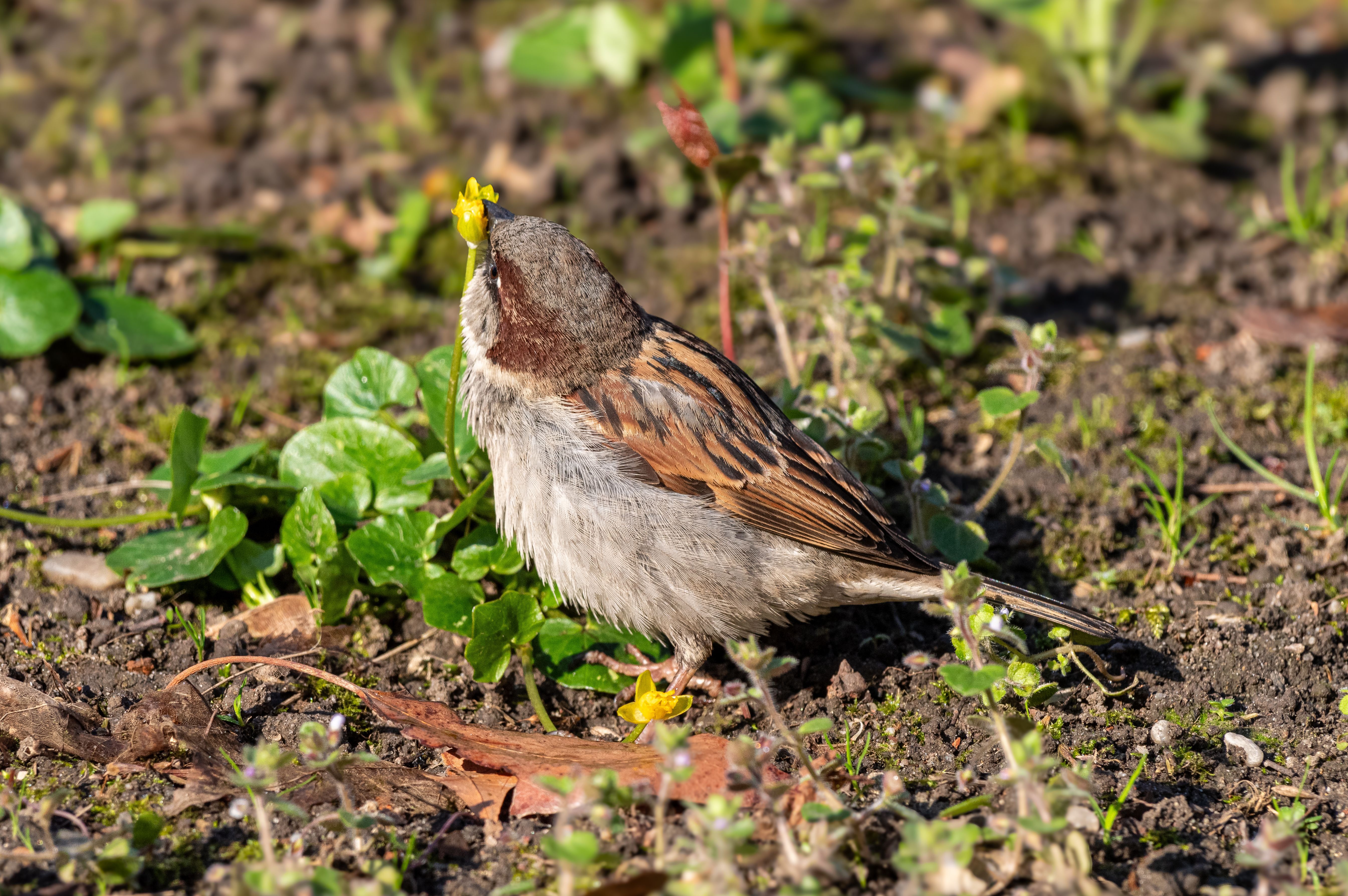 Bied het voer aan op de grond of in een voederhuisje, want huismussen zoeken naar eten graag in groepjes.